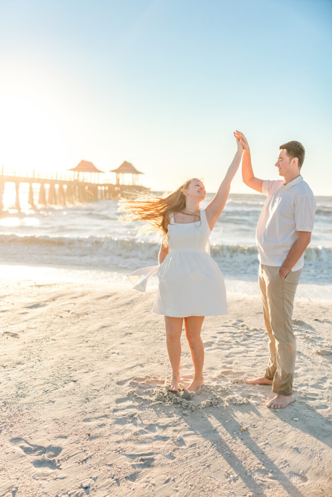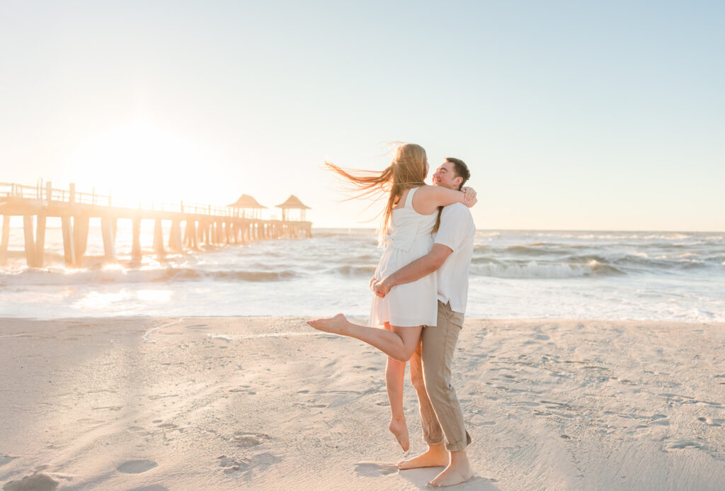 Margaux + Austin | A Windy Naples Pier Engagement Session