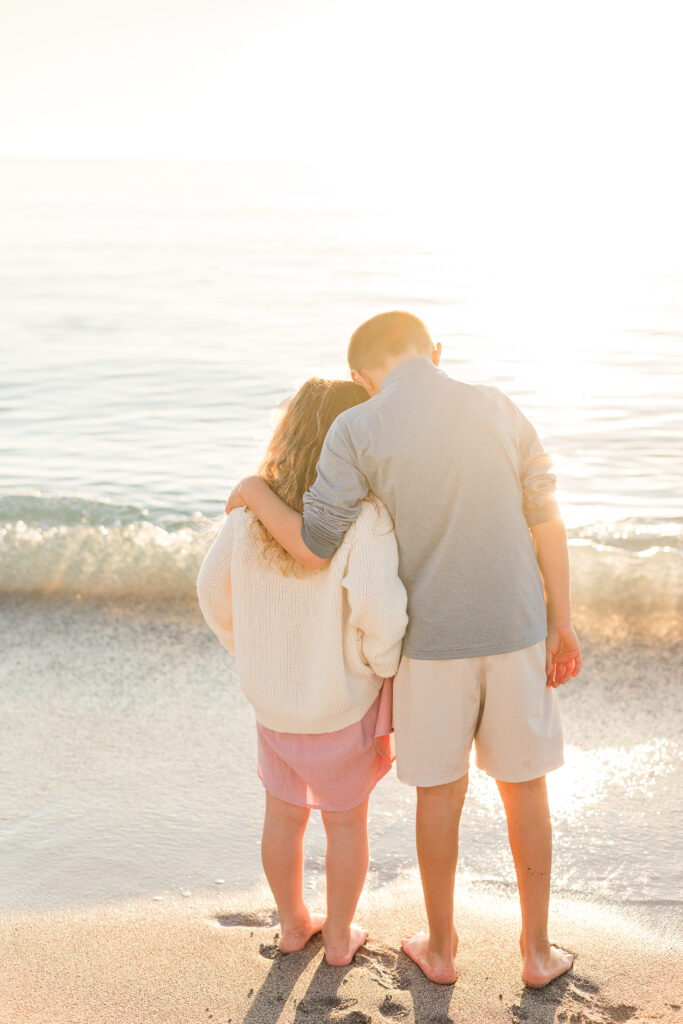 This family spent their evening barefoot in the sand, walking slowly along the shoreline, chasing waves, and letting the kids explore without rushing them along. No tight timelines. No pressure to “perform.” Just space to breathe and be together.